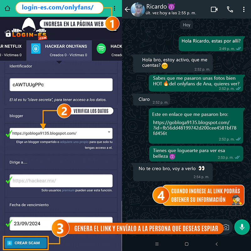 - ❌ Riesgo de ser descubierto: Hackear un OnlyFans con SCAM corres el riesgo de descubierto si fue un mensaje personalizado.